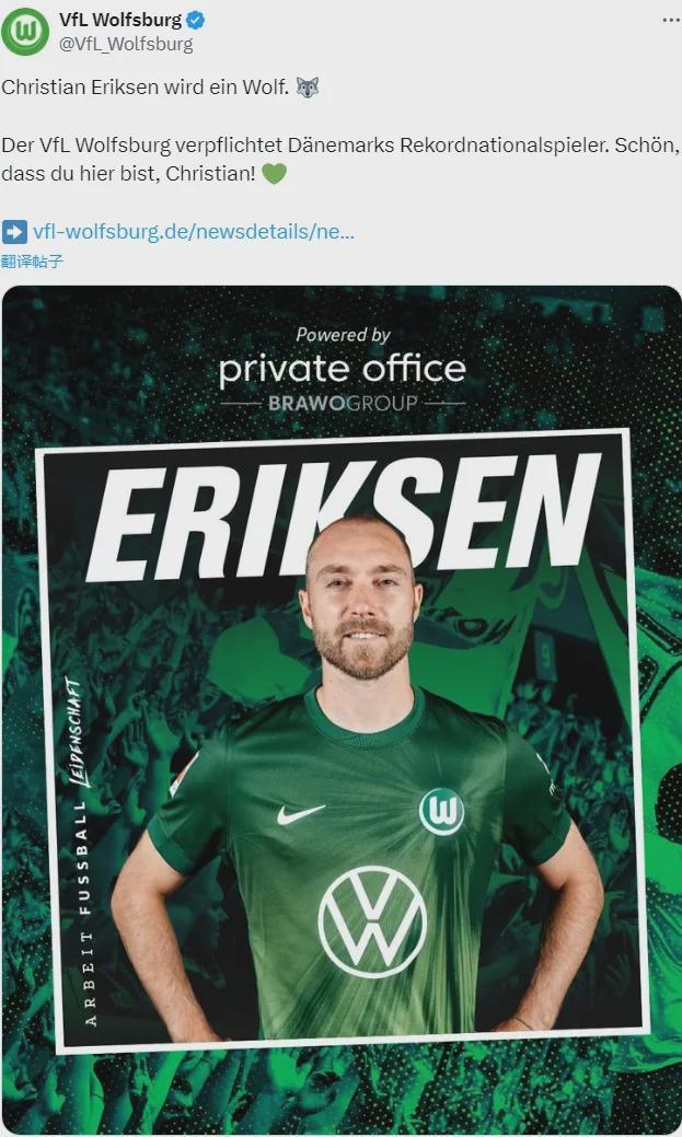 官方:沃尔夫斯堡宣布免签了埃里克森!据悉双方签下了一份2027年到期的合同。