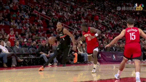 卡斯尔热身时,干脆把火箭的篮筐都扣歪了